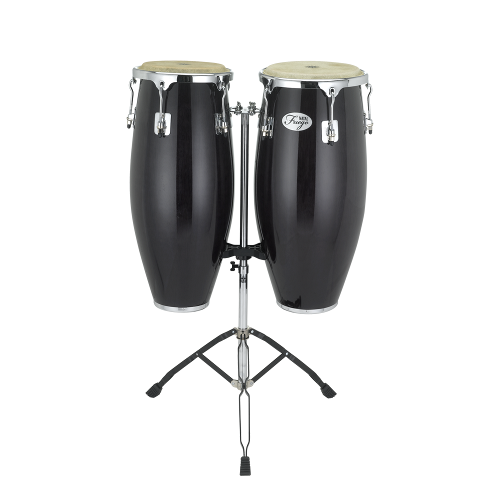 Natal NGU1011-BHC Natural Wood Congas 10inch and 11inch Chrome Hardware Stand, Black Gloss