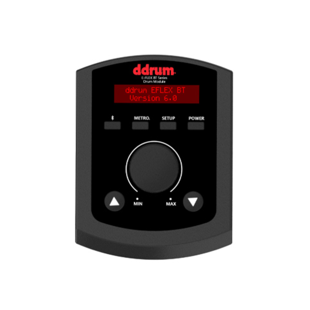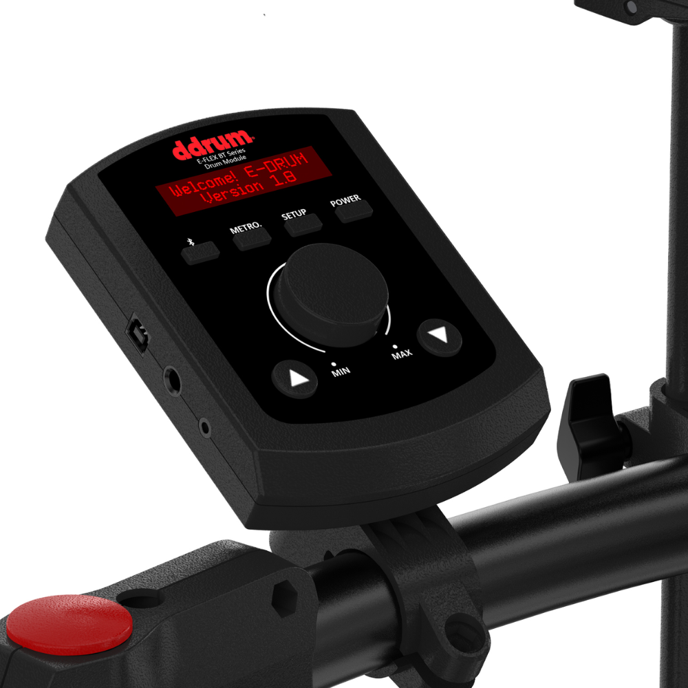 The ddrum E-FLEX BT series module comes with Bluetooth functionality, allowing players to wirelessly connect and play along with their favorite music without the need for cables. In addition to Bluetooth, the module includes versatile connectivity options: a 1/4″ mono line out, a 1/8″ headphone output, a USB connection, and a 1/8″ AUX line out for seamless integration with various devices and audio equipment.