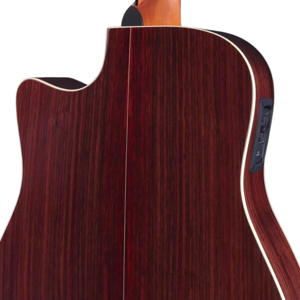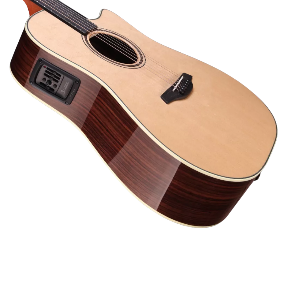 - Dreadnought body shape with cutaway