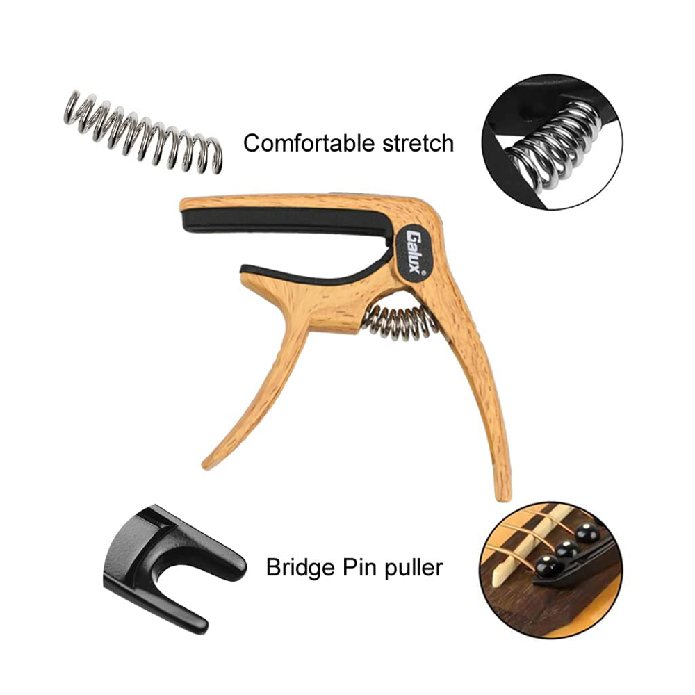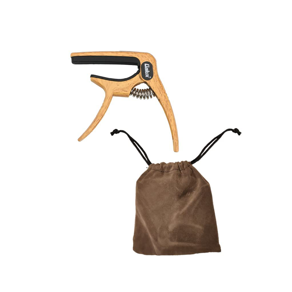 Galux GC-501A 3in1 Zinc Metal Capo for Acoustic and Electric Guitar, Natural Wood