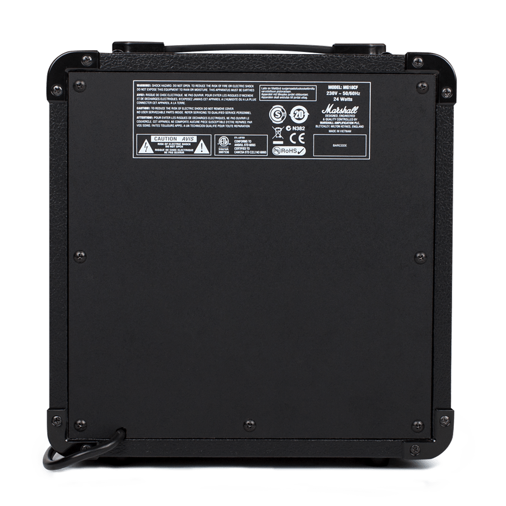 Take your sound to the next level with Marshall's MG10G 10Watt Combo Guitar Amplifier. This compact amp packs a powerful punch and is perfect for both band practice and home use. With an array of tonal control options, custom speakers, contour control function and overdrive, you're sure to give your audience an amazing performance. And with its emulated headphone output and MP3/line in feature, you can also jam out during late night practice sessions without disturbing your neighbors. Get ready to rock!