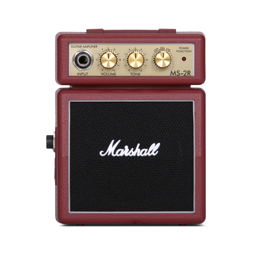 Introducing the Marshall MS-2R Micro Guitar Amplifier. This little red amplifier might be small, but don't let its size fool you. It packs a punch with true Marshall tone and an overdrive channel for that dirty crunch. With the included belt clip, you can take your tone on the go. Whether you’re practicing at home or in public, you won’t have to worry about not being heard - this 1-watt amp will make sure your sound resonates! Plus, its headphone socket doubles up as a pre-amp out, allowing your sound to reach any audience. Get ready to experience bigger sound with the Marshall MS-2R Micro Guitar Amplifier.