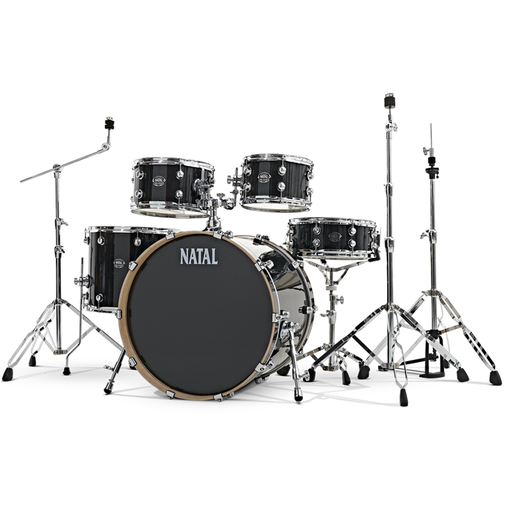 Arcadia’s birch shells produce a full bodied sound, with plenty of low-mid punch. While resonant in the top end, Birch has plenty of attack while maintaining a ‘mid-scooped’ tone – a quality favoured by studio engineers and recording artists. The lugs are lower mass editions of the distinctive Originals Series lug, and come embossed with the Natal sun logo. Tom mounts feature the Double Tom Mount (DTM) used on the Double Tom Stand from Natal’s acclaimed Pro Series hardware, and its non-slip aluminium ball design allows you to position your toms accurately at just about any angle. And with the aluminium ball being more durable than the resin ball more commonly used, you get greater hold, stability and longevity. There is also a post clamp on the DTM to mount a cowbell, tambourine, or other percussion. Bass drum claws feature rubber gaskets to help protect the hoop from getting marked under tension, and shell mounted telescopic bass drum legs allow the bass drum to be positioned securely. Arcadia features 2mm triple flanged chrome hoops for a more open and resonant sound. Bass drum hoops are colour matched with the bass drum on wrap and lacquer finishes. The British designed Arcadia Series combines Natal quality and craftsmanship with real value for money. Taking inspiration from Natal’s Originals Series, Arcadia kits are designed for drummers who want a lower cost kit, but are unwilling to compromise on sound or build quality.