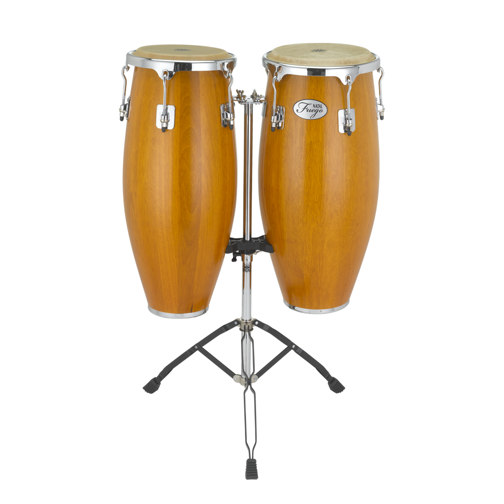 Natal NGU1011-MCH Natural Wood Congas 10inch and 11inch Chrome Hardware Stand, Matt Honey