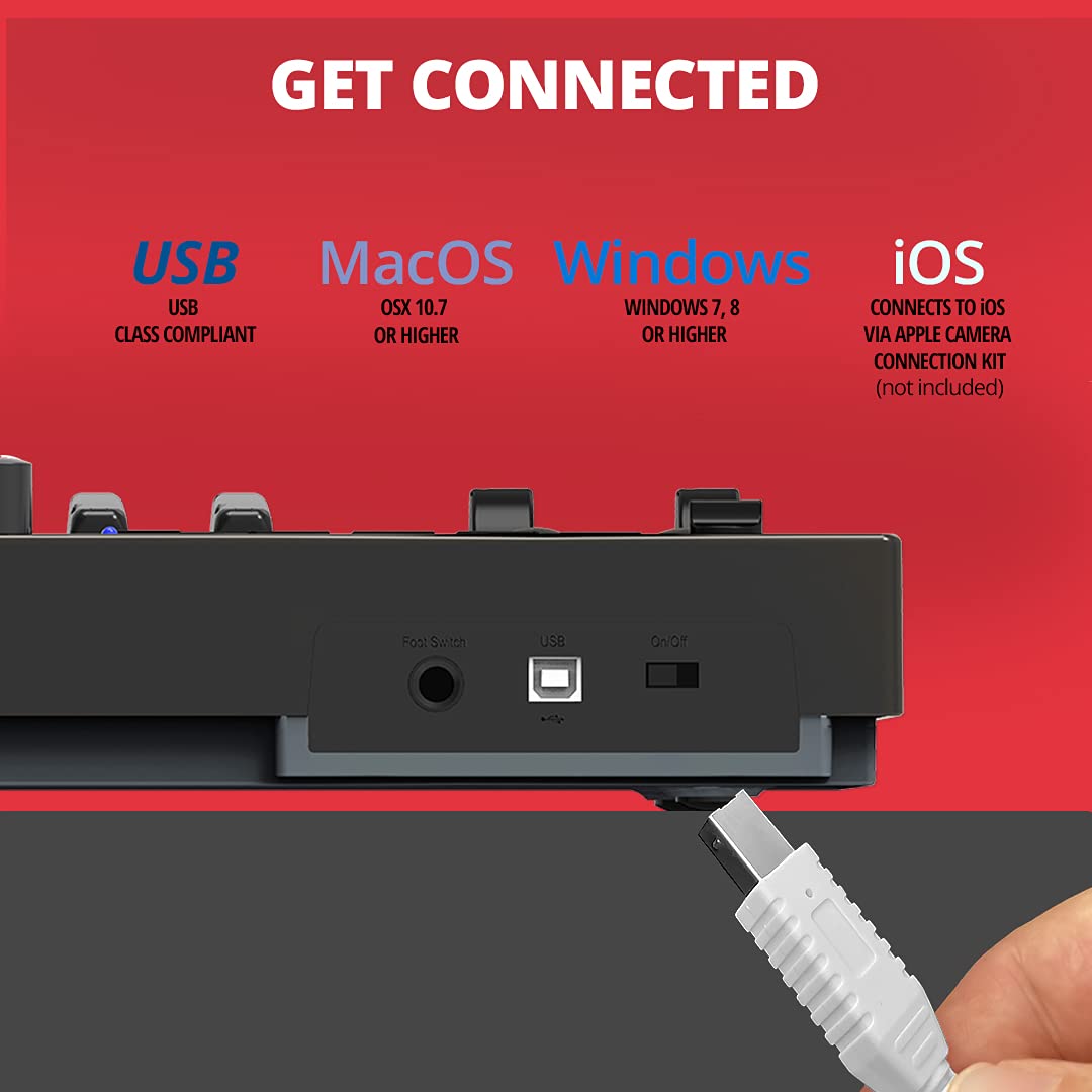And if you are often on the move you can easily hook your Impact LX+ keyboard to an Apple iPad using the iPad’s optional USB camera connection kit (optional). Of course the Impact LX is powered by the iPad so you can work away for as long as your iPad remains charged.