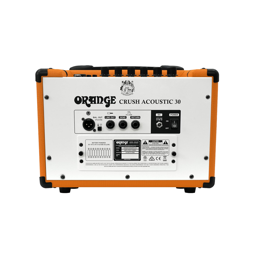With over 50 years of experience in great guitar tone and quality, the Crush Acoustic 30 is Orange’s entry into the world of acoustic amplification. At ease in any situation, this lightweight, portable, battery powered acoustic combo continues the Orange tradition of simple but versatile design.