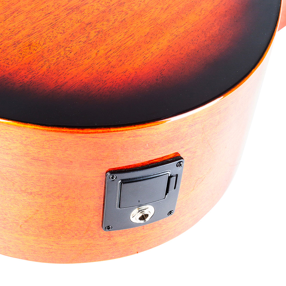The Tanglewood Discovery DBT-DCE-SBG is a warm-sounding, powerful electro-acoustic built for players who want great tone on and off the stage. Its all-mahogany body delivers rich, resonant sound, while the dreadnought cutaway offers strong projection and easy upper-fret access. Finished in a sleek thru-sunburst gloss, it looks as impressive as it sounds. With TW-EX4 electronics and a built-in tuner, you get clear, adjustable tone for practicing, recording, or performing anywhere.