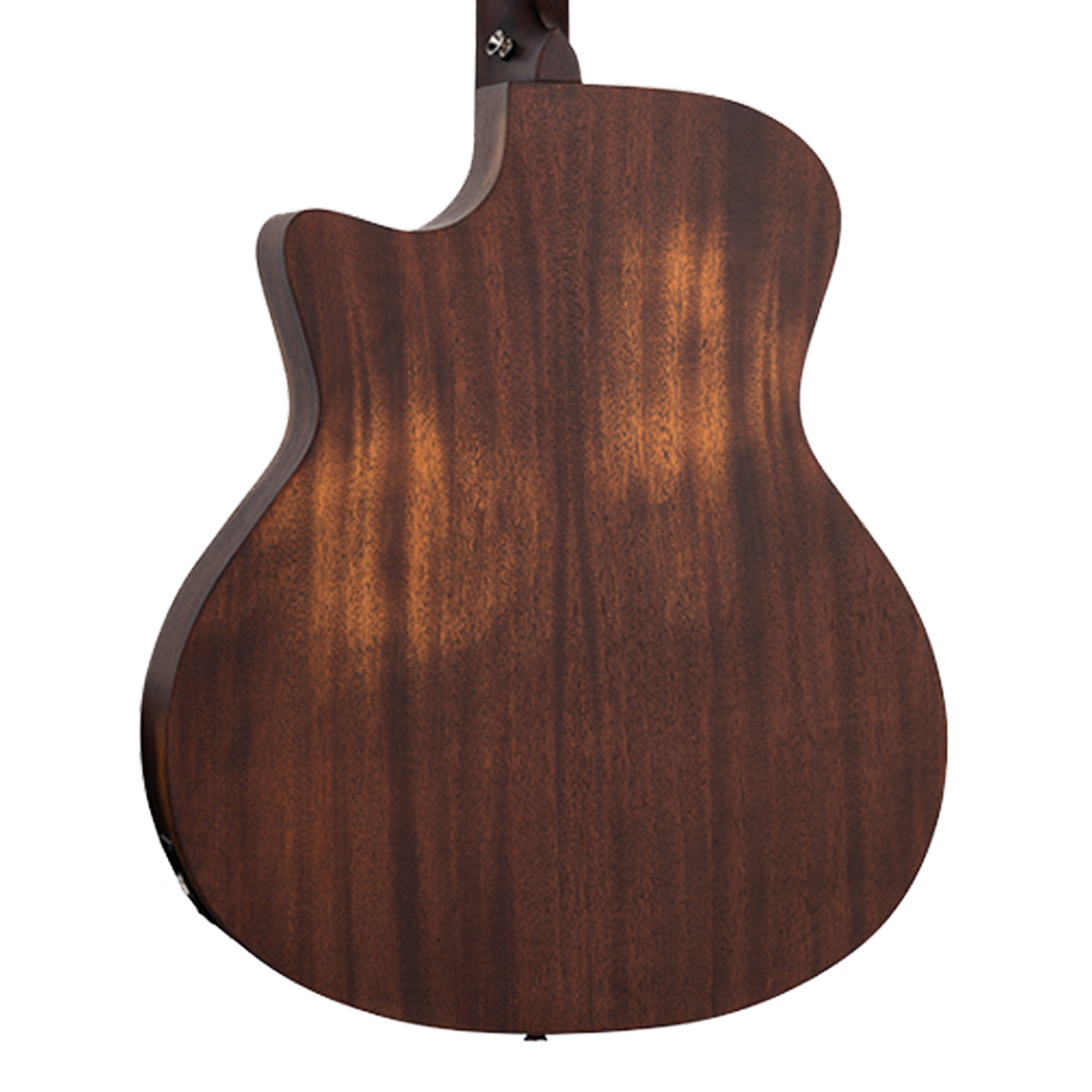 The magnificent satin finish embraced the natural excellence of the mahogany body and sides, providing a beautiful sonic balance and delivering every note with depth and power. The smooth eboncore fingerboard ensures a balanced sound, while the sleek Venetian cutaway provides immense freedom when strumming or fingerpicking. The built-in tuner allows for easy and precise tuning, and the guitar's completely impeccable fashion ensures no buzz, strain, or muting. With its dazzling looks, the Tanglewood TW OT 4VCE guitar allows the wood to breathe, giving you enhanced resonance and sustain for a truly magical playing experience. Plug in, amp up, and project your tone gloriously to the back of the room with this majestic instrument – perfect for the solid top guitar enthusiast.