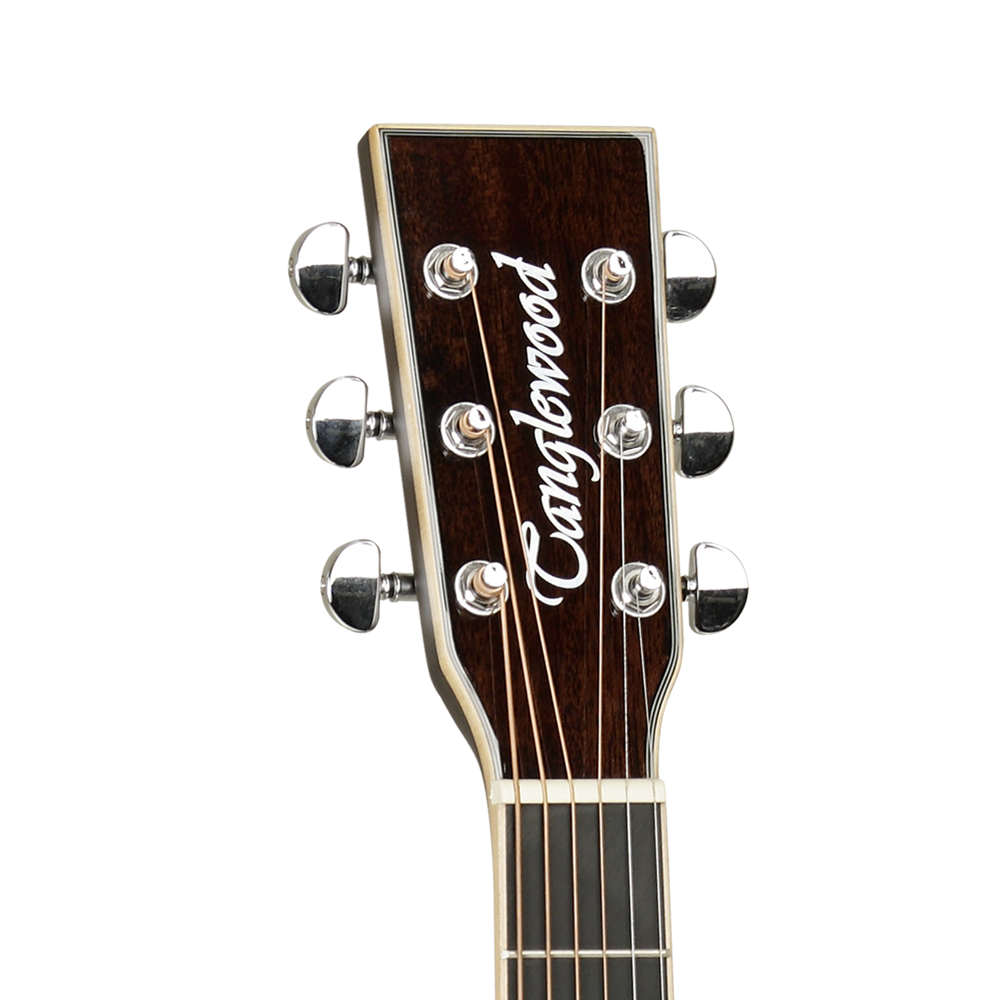 We fit Grover machines for optimum tuning, A Tanglewood Premium Plus I EQ system for live and studio capabilities, and finish the instrument in a stunning high gloss finish that we’ve christened Autumn Vintage Burst.