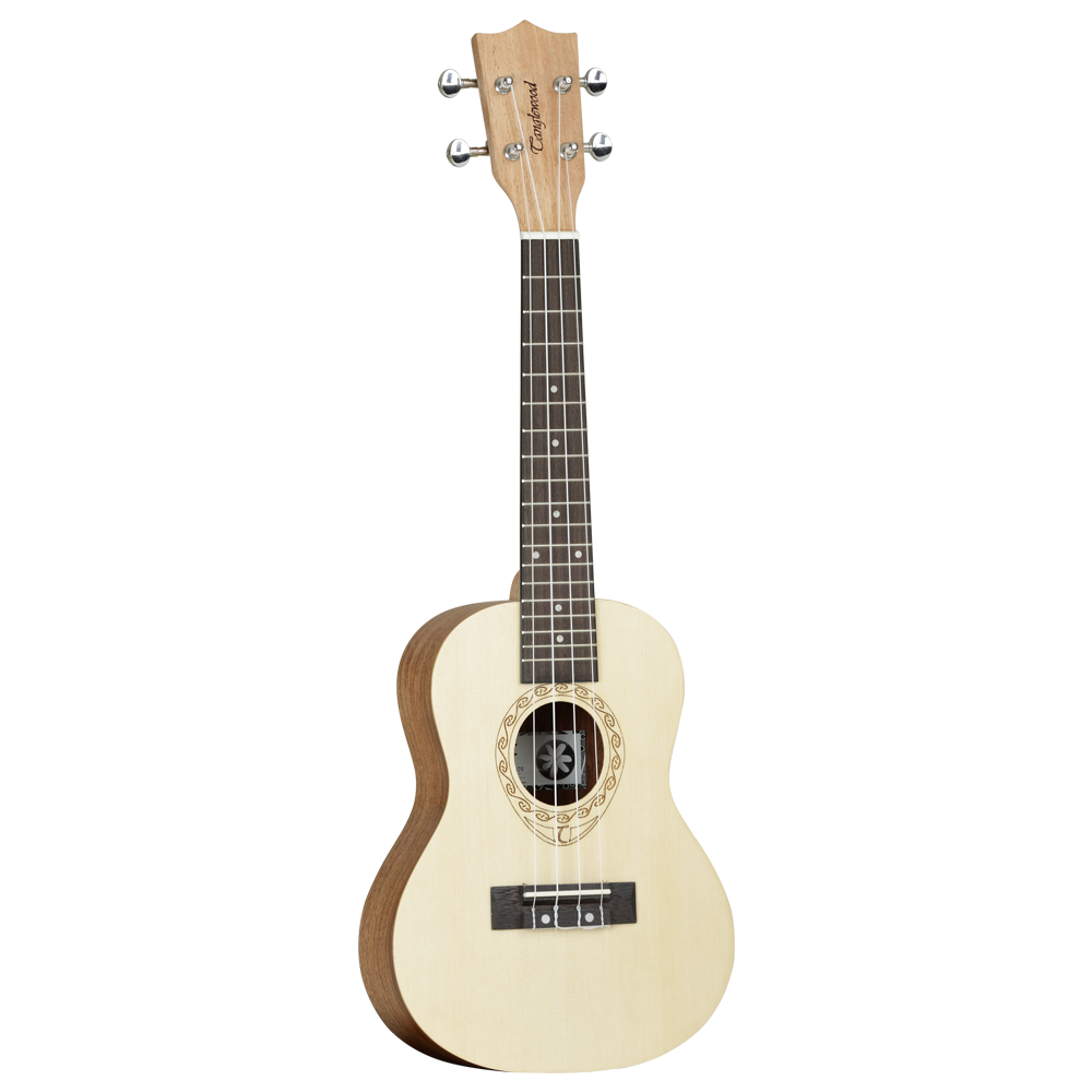 Introducing the Tanglewood TWT 4 Concert Ukulele, crafted from an exquisite blend of exotic materials for a stunning look and sound. Each instrument is exquisitely crafted from a contrasting range of Mahogany and Spruce woods, resulting in beautiful figuring in the grain and a unique look for each instrument. The luxury “fiddleback” contoured back provides increased sound projection and volume and is combined with Aquila strings and Die cast chrome metal machine heads for precise tuning. The Concert ukulele features a Spruce top, Mahogany Arched back, Mahogany sides, an Natural Wood fingerboard and bridge and Clear Aquila Nylon strings, all finished in a Natural Satin. The perfect choice for solid top guitar players, the Tanglewood TWT 4 - TIARE Series, Concert Ukulele will provide you with a luxurious feel and fantastic sound.